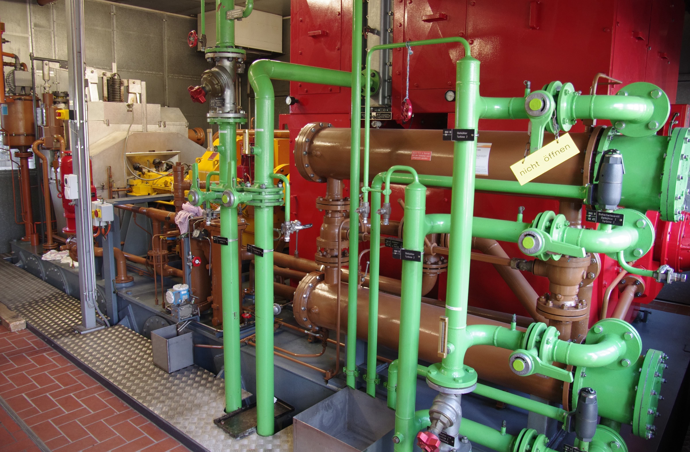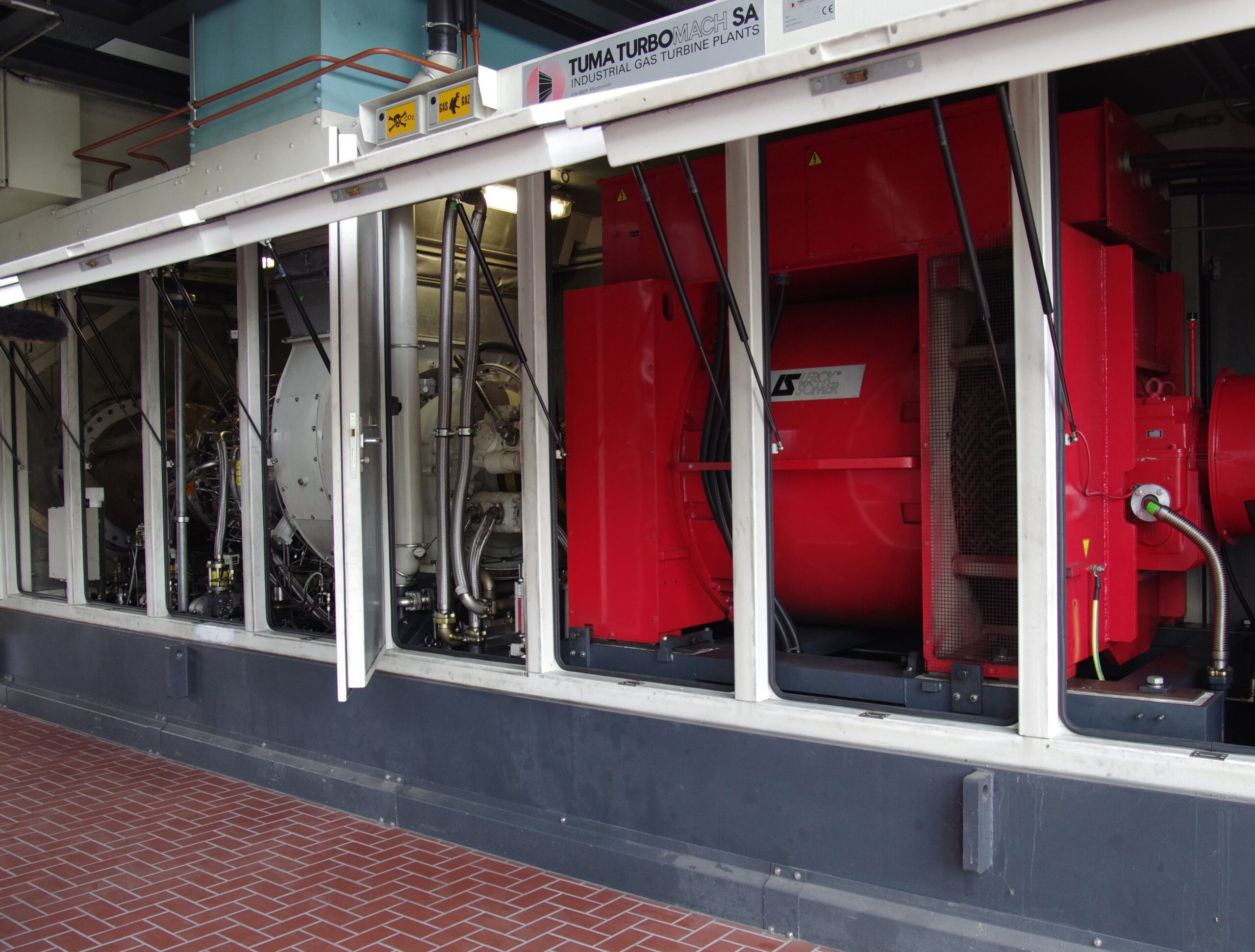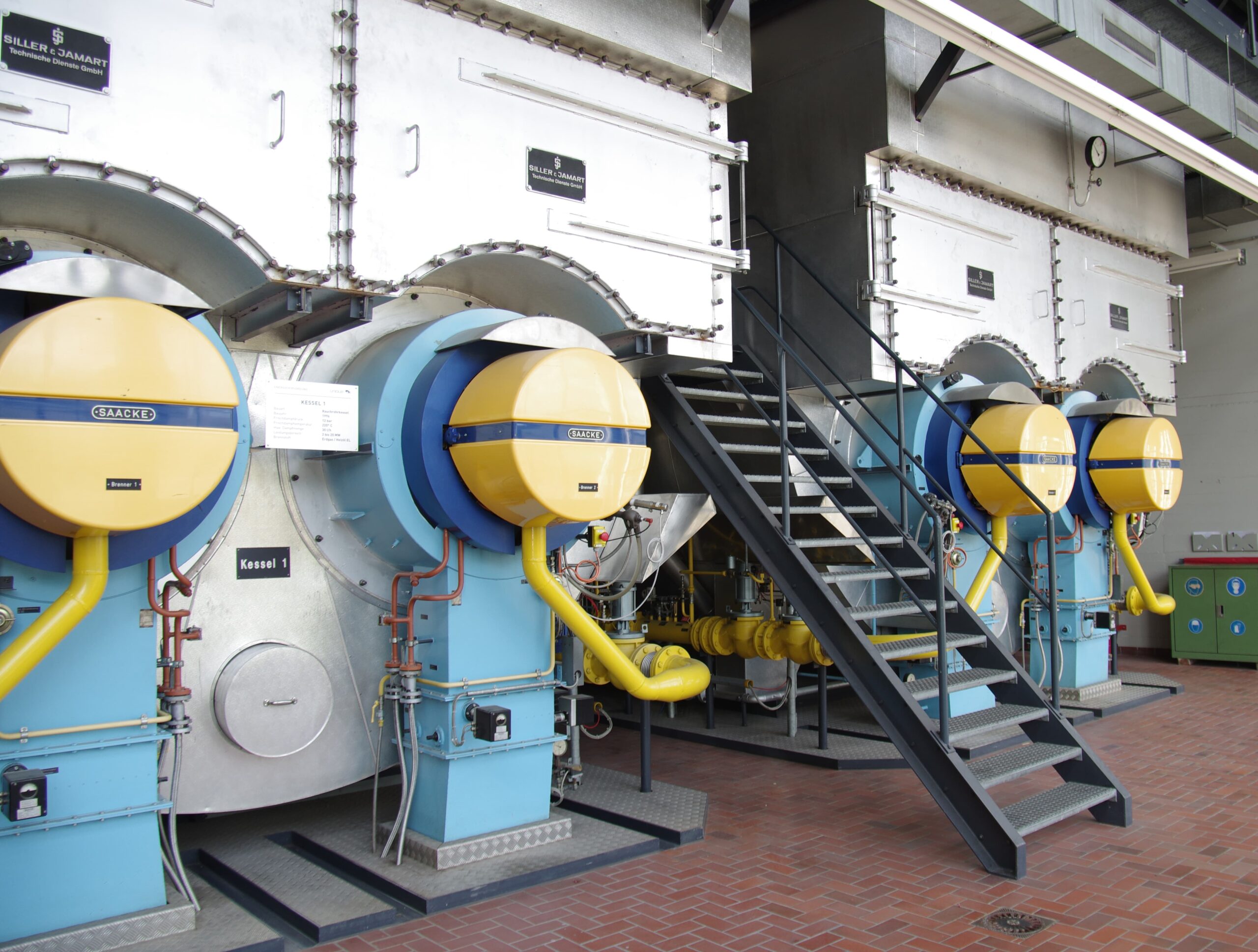 In der Energiezentrale der Flughafen Zürich AG sind vier Gaskessel mit einer Wärmeleistung von insgesamt 120 MW installiert. Die Abstufung in zwei 20-MW-Anlagen und zwei Einheiten mit je 40 MW erlaubt eine flexible Kombination und daher angepasste Betriebsführung der Wärmeproduktion. Die beiden grossen Wasserrohrkessel liefern zunächst Frischdampf von 480 °C und 80 bar. Auf der anderen Seite sind zwei Rauchrohrkessel im Einsatz, die Frischdampf mit 220 °C und 12 bar liefern. Die Kessel sind grundsätzlich für eine Zwei-Stoff-Funktion ausgelegt, es kann also auch Heizöl (ca. 10 %) zugeführt werden. In der Energiezentrale befinden sich auch drei Speicher mit je 150 m3 Inhalt, in denen eine Temperaturschichtung von 80 bis 180 °C erfolgt. Hier können rund 40 bis 50 MWh Wärme bereit gehalten werden, um alle Wärmeabnehmer auf dem Gelände des Flughafens Zürich zuverlässig versorgen zu können. Eingesetzt wird die Wärmelieferung für die Gebäudeheizung und das Brauchwarmwasser, aber auch für diverse Prozesse beim Catering und bei der Flugzeugwartung. Für die Stromerzeugung stehen einerseits die beiden, von den zwei 80-bar-Dampfkesseln beschickbaren Gegendruck-Dampfturbinen mit 2,3 bzw. 2,7 MW elektrischer Leistung zur Verfügung. Anderseits befindet sich seit dem Jahr 2000 eine zusätzliche Gasturbine mit 5 MW Leistung im Einsatz, welche zur Wirkungsgradsteigerung und Ressourcennutzung die Abgase dem einen Wasserrohrkessel zuführt. Total können also 10 MW Strom erzeugt werden. Ursprünglich war diese Stromproduktion für den Eigengebrauch konzipiert worden, dann wurde lange Zeit eine Einspeisung ins öffentliche Netz durchgeführt und heute steht wieder der gezielt planbare, eigene Gebrauch im Vordergrund.